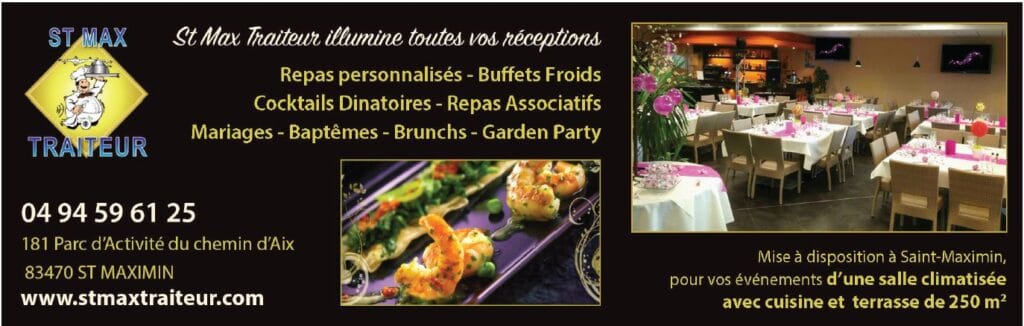 Traiteur basé à Saint-Maximin-la-Sainte-Baume, spécialisé dans l’organisation de réceptions et d’événements privés ou professionnels.
